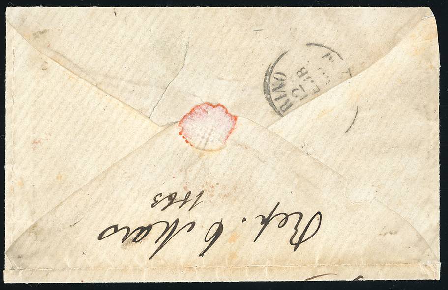 1863 - 15 cent. azzurro (11), in affrancatura mista con 5 cent. e 40 cent. IV emissione di Sardegna (13E,16E), perfetti ad eccezione del 5 cent., leggermente sfiorato a destra, su busta da Genova 4/2/1863 a Londra. Rara affrancatura mista per l'estero! A. ed E.Diena, Chiavarello. Ex coll. Imperato.