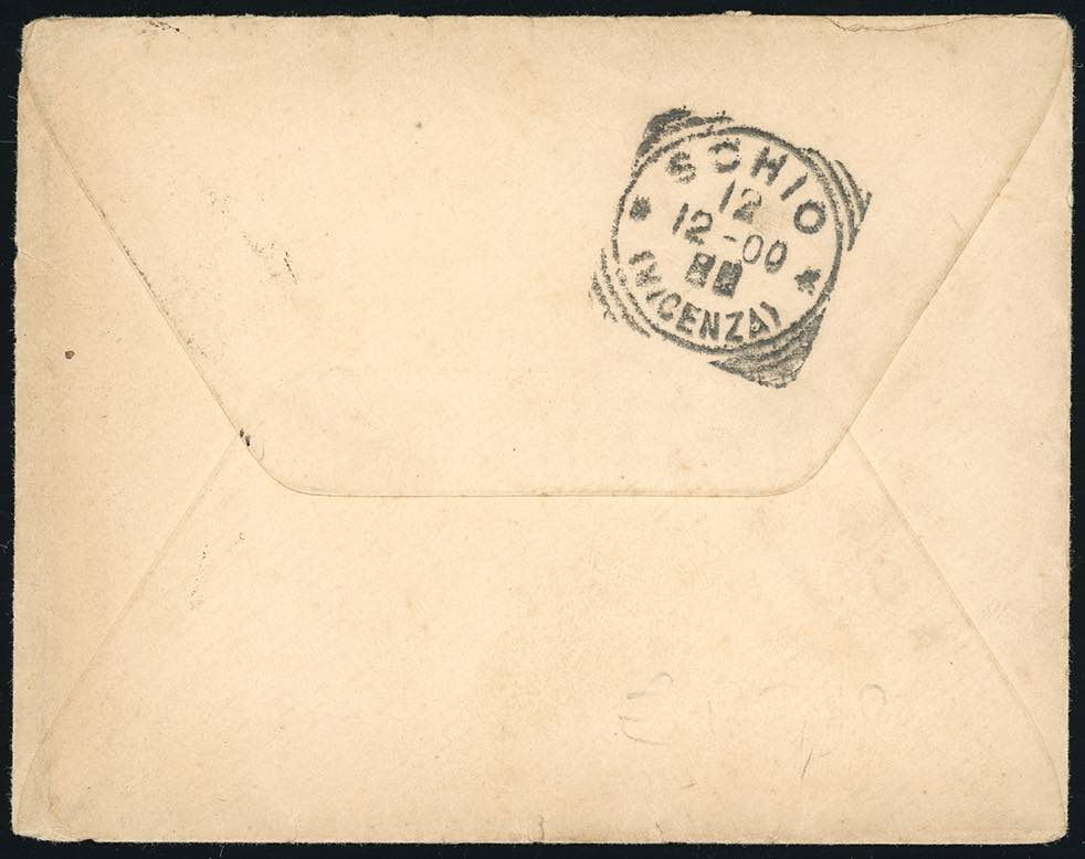 1900 - 20 cent. Umberto I (61), angolo di foglio con NUMERO DI TAVOLA, perfetto, su busta da Milano 11/10/1900 a Schio. Molto rara! ... Leggi tutto