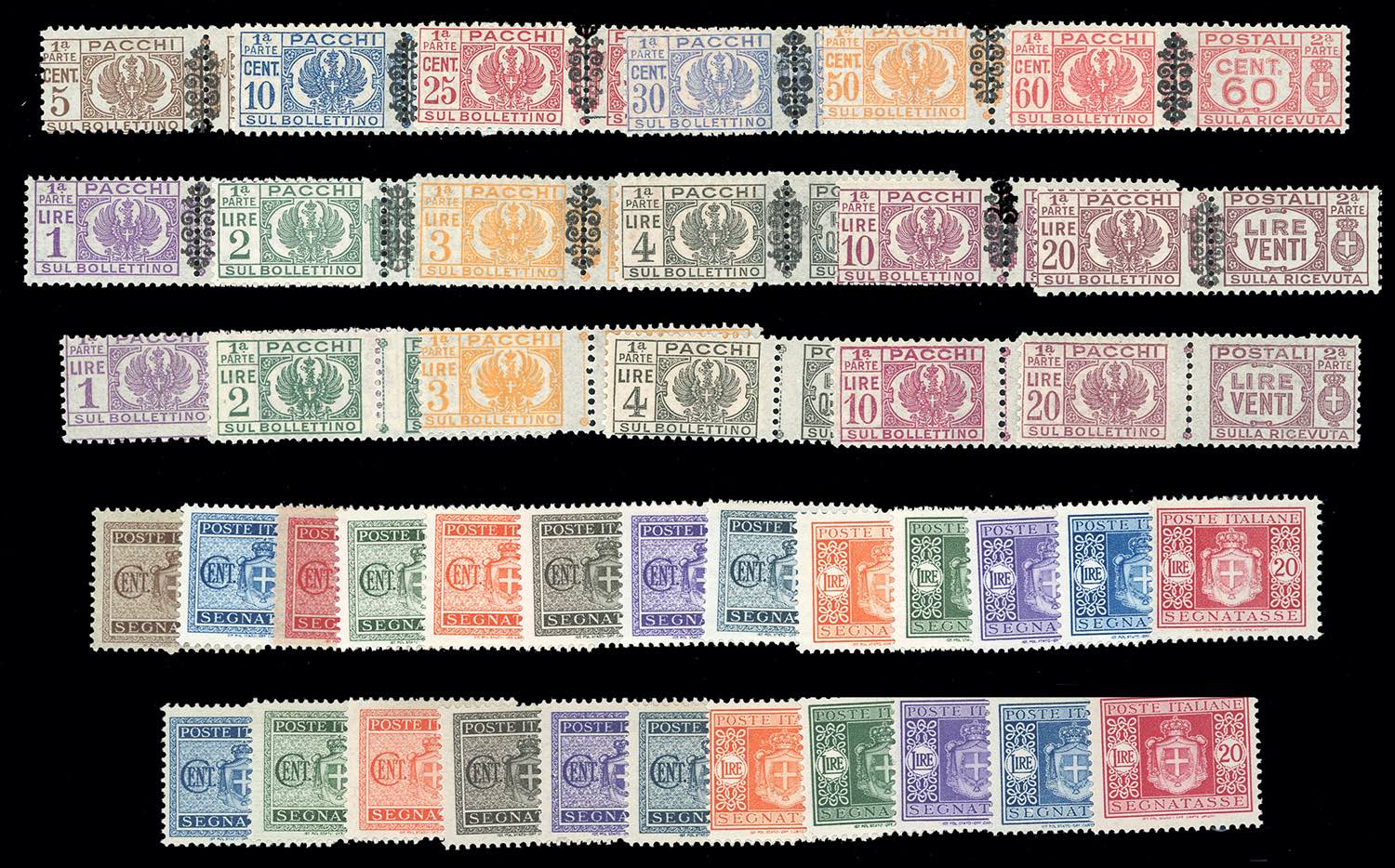 Lotto 1456 - PACCHI POSTALI/SEGNATASSE 1945 - Le quattro emissioni ...