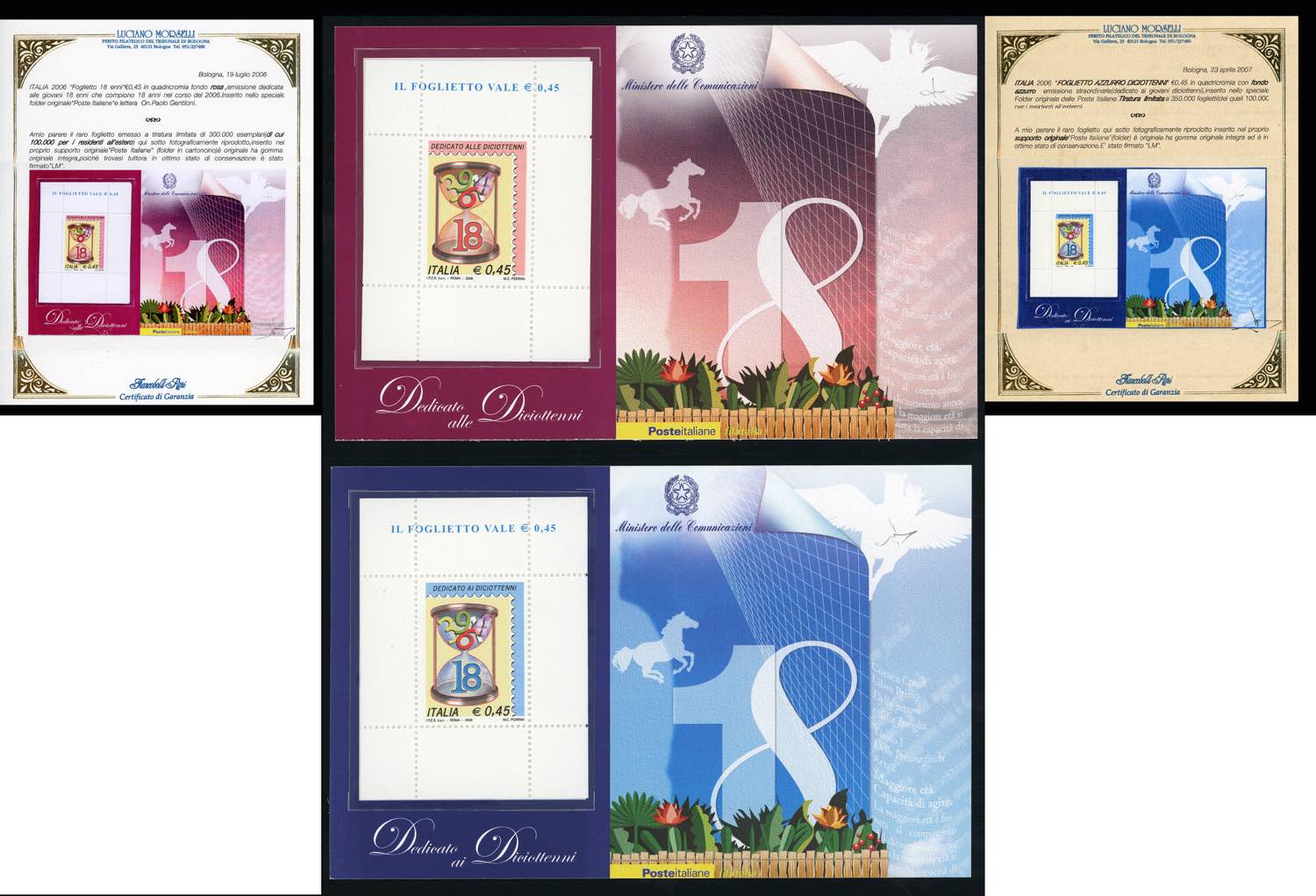 2006 - Diciottenni, foglietti (43/44), con busta accompagnatoria, gomma originale integra, perfetti. Cert. Morselli.