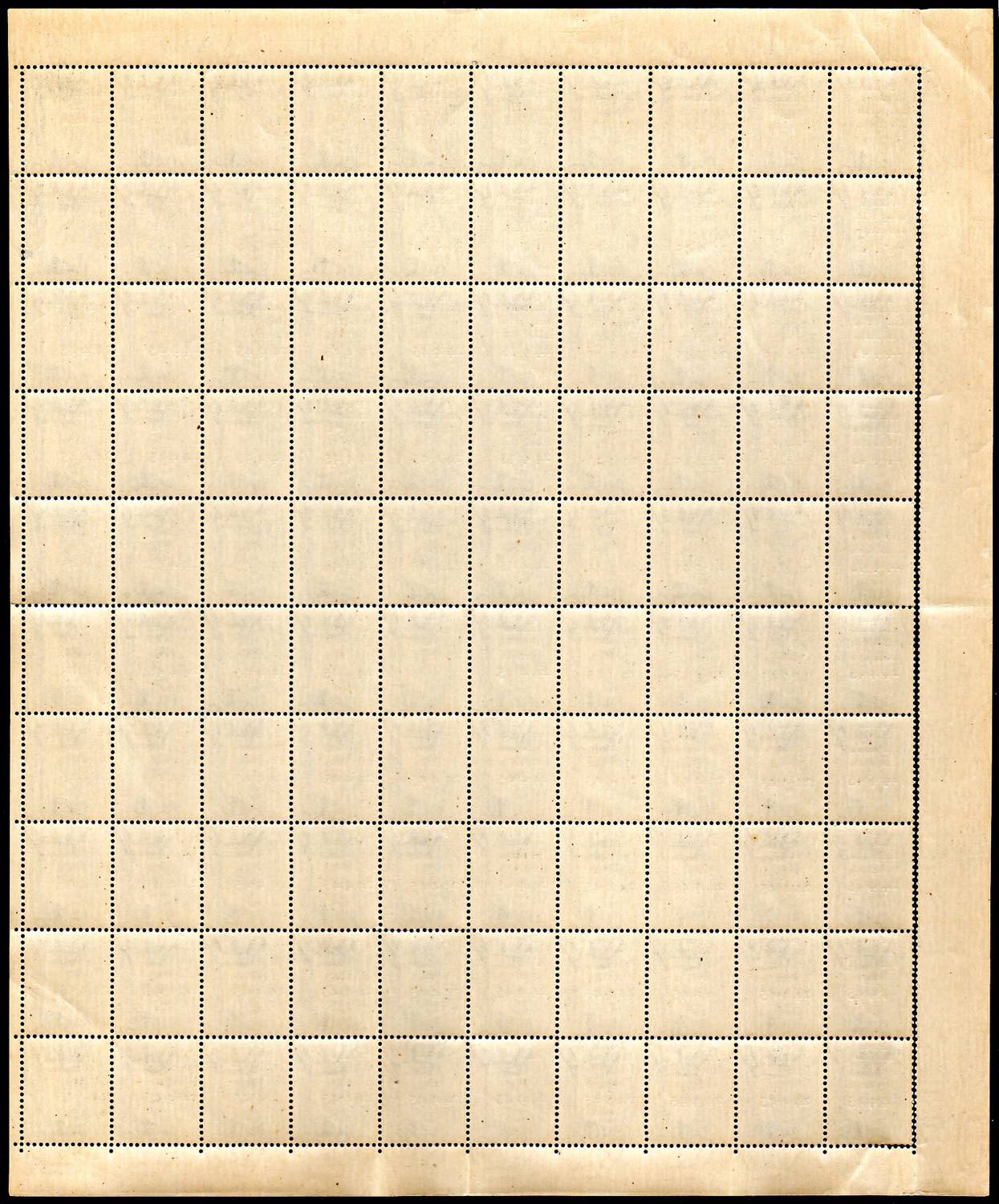 IMPERIA 1945 - 2,55 lire Monumenti distrutti soprastampato, foglio intero di 100 esemplari con diverse varietà catalogate (10,10db,10dc,10dd), ed altre finora non catalogate, mancanze dei punti sopra le "i" della soprastampa. Gomma integra, splendido. Ottima qualità. Ferrario.