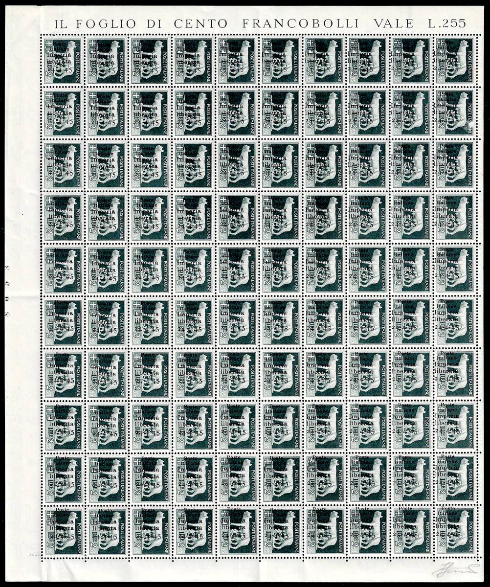 IMPERIA 1945 - 2,55 lire Monumenti distrutti soprastampato, foglio intero di 100 esemplari con diverse varietà catalogate ... Leggi tutto