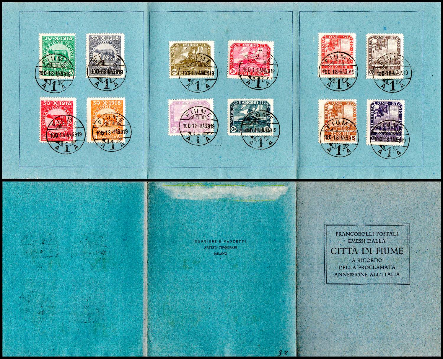 FIUME 1919 - Plebiscito, serie completa (62/73), perfetti, usati su cartoncino commemorativo a Fiume 18/5/1919.