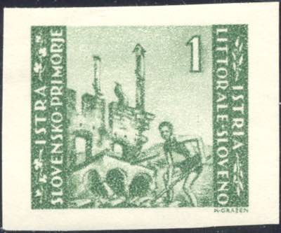 LITORALE SLOVENO OCCUPAZIONE JUGOSLAVA 1945 - 1 lire, non dentellato (53a), gomma originale, perfetto.