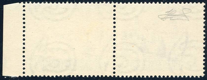 1949 - 35 lire Paesaggi, coppia orizzontale, il secondo esemplare senza la stampa del centro (352i), gomma originale integra, perfetta. Molto rara. Cert. Ferrario.