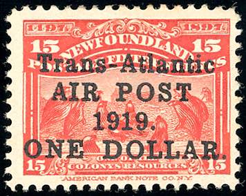 BRITISH COMMONWEALTH-CANADA-NEWFOUNDLAND POSTA AEREA 1919 - 1 $ su 15 cent. volo attraverso l'Atlantico del Cap. Alcock, senza punto dopo ... Leggi tutto