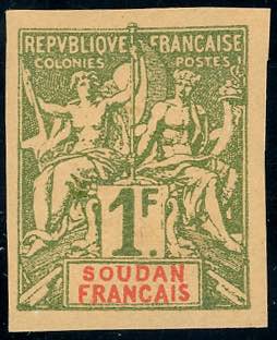 SUDAN - COLONIE FRANCESI 1894 - 1 fr. verde bronzo, (Yv.15), non dentellato, nuovo, gomma originale, perfetto.