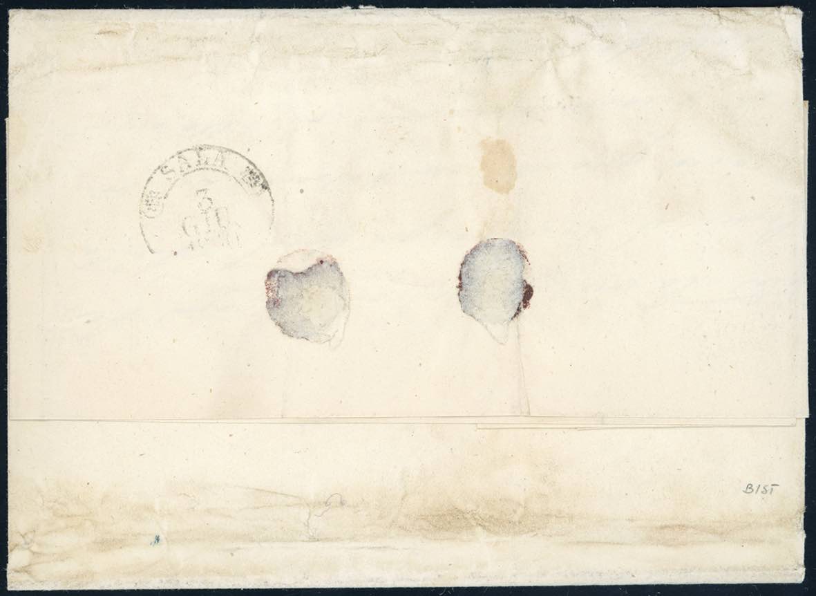 1860 - 1 grano rosa chiaro, I tavola (3), striscia orizzontale di cinque, angolo di foglio, tutti gli esemplari senza filigrana, due francobolli con lievi difetti, su lettera da Salerno 2/6/1860 a Sanza, tassata 7 1/2. interessante e rara. Chiavarello, cert. E.Diena.