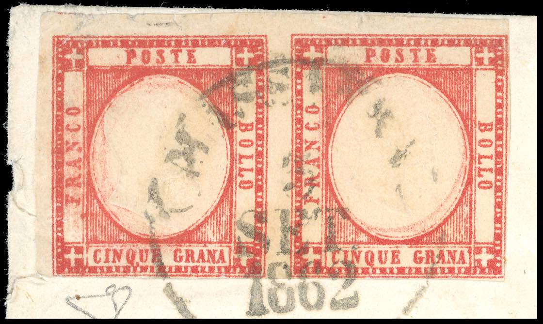 Lotto 231 - 1862 - 5 grana carminio, coppia orizzontale, il primo ...