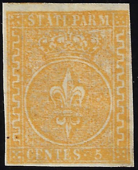 Lotto 303 - 1853 - 5 cent. giallo arancio (6), gomma originale, ...