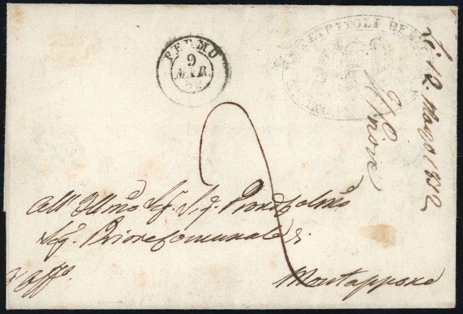 Lotto 510 - MONTERUBBIANO, cartella annullatore non catalogato - 1/2 ...