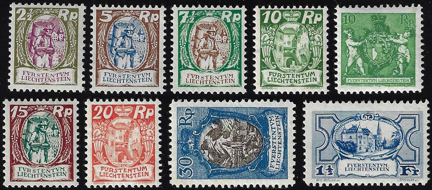 Lotto 2908 - LIECHTENSTEIN 1924/27 - Nuovi tipi, serie completa (63/71), ...