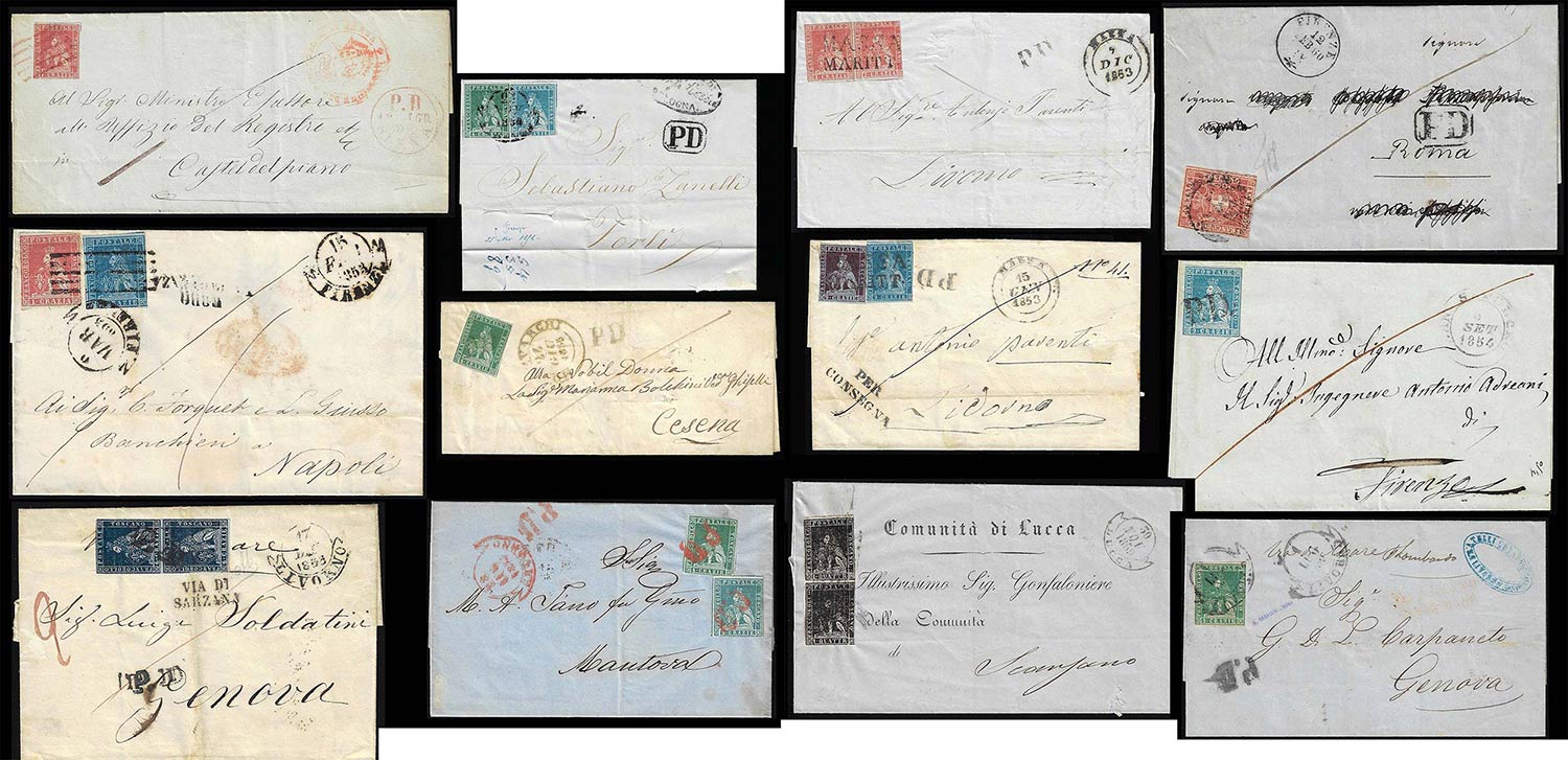 Lotto 3016 - TOSCANA 1852/1860 - Bell'insieme di dodici lettere con ...