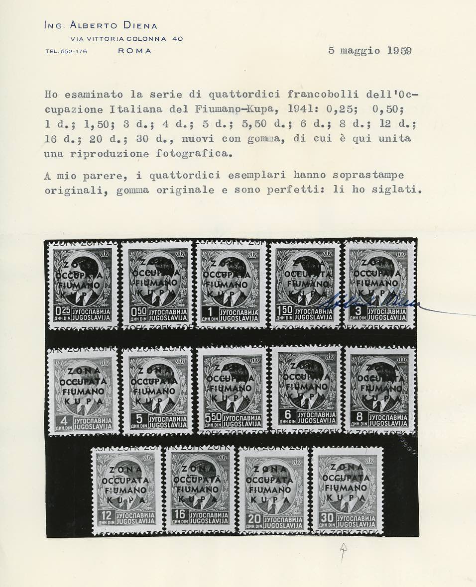 ZONA FIUMANO KUPA 1941 - 30 din. soprastampato (14), gomma originale integra, perfetto. Bello e raro! Bottacchi, cert. E.Diena e Ferrario.