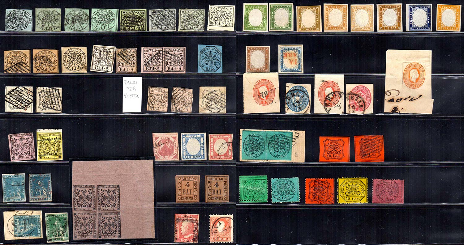 ANTICHI STATI 1851/1862 - Piccolo insieme di francobolli, nuovi e usati, degli Antichi Stati. Notati tre falsi per posta dello Stato ... Leggi tutto