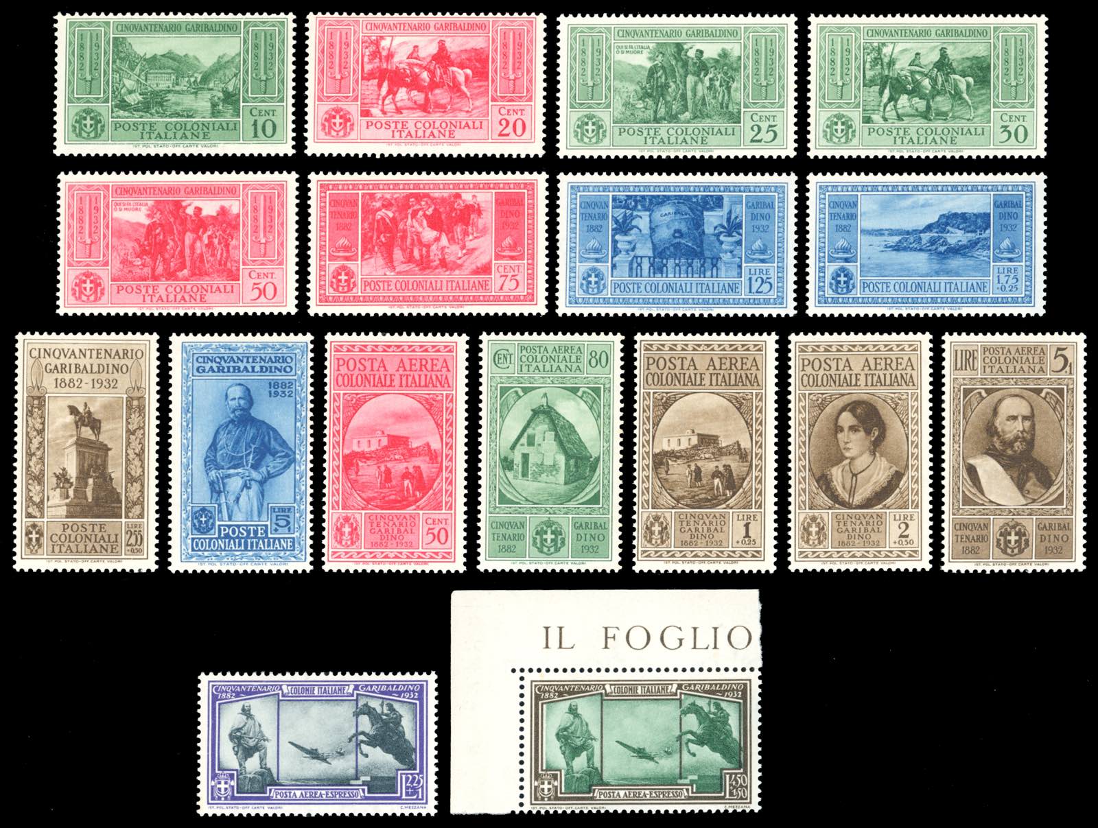 1932 - Garibaldi, serie completa (1/10+A), gomma originale integra, perfetti.
