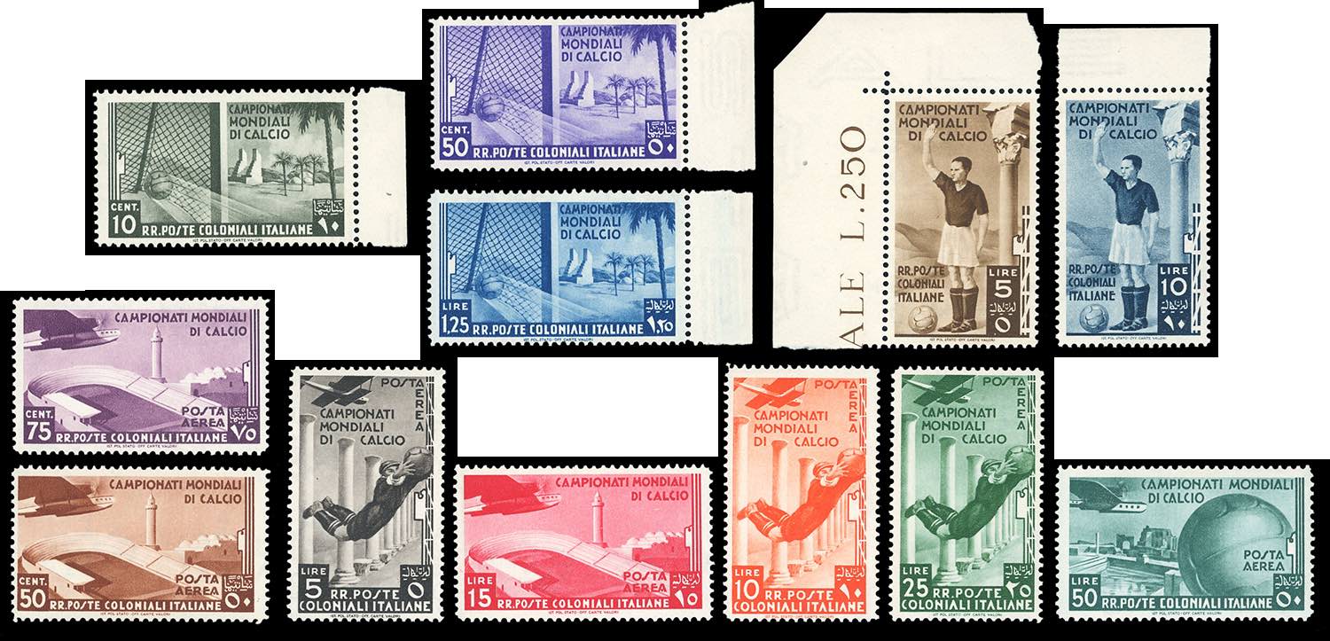 1934 - Mondiali di calcio, serie completa (46/50+A), gomma originale integra, perfetti, ottima qualità. Cert. Ferrario.