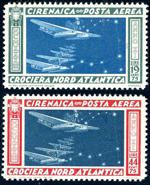 POSTA AEREA 1933 - Crociera di Balbo (18/19), gomma originale integra, perfetti. E.Diena.