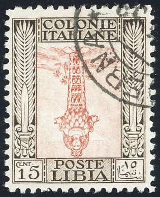 1926 - 15 cent. Pittorica, dent. 11, centro capovolto (62a), perfetto, usato a Derna. Molto bello e raro! A.Diena, cert. Sorani.