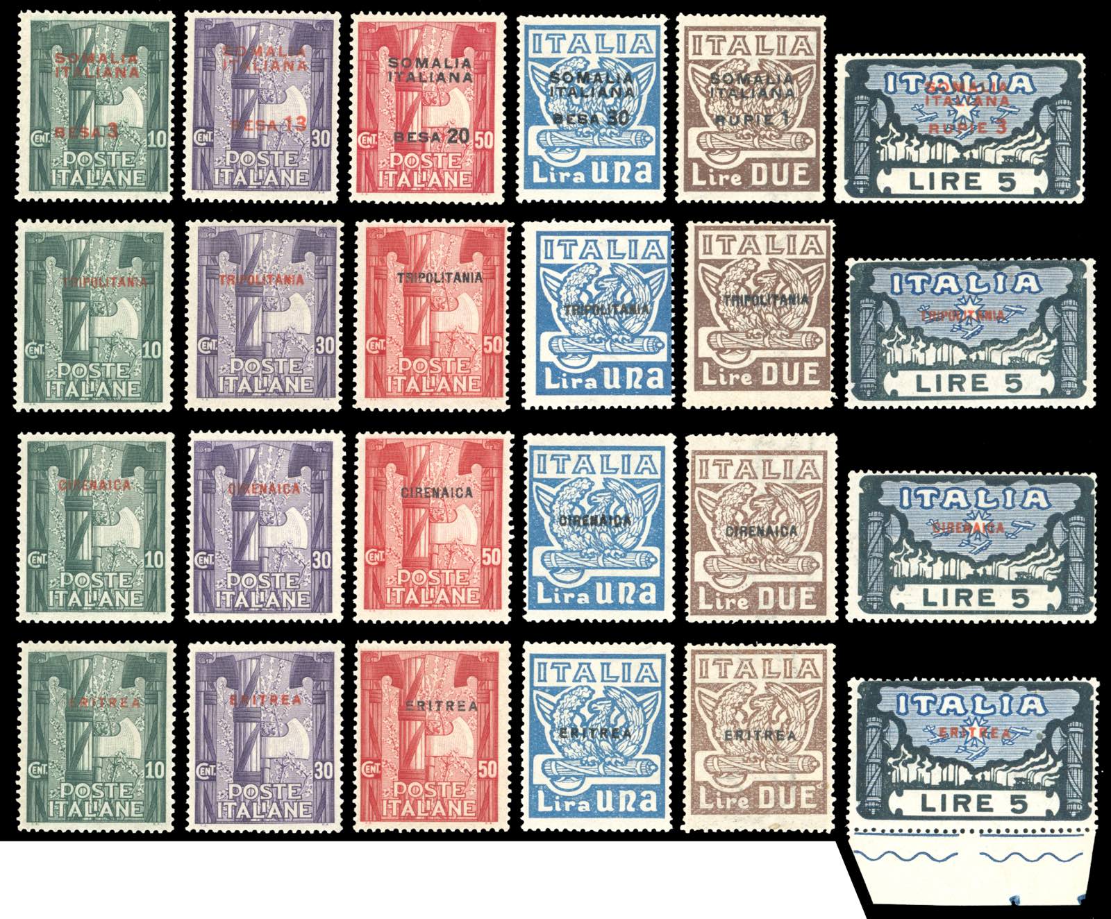 1923 - Marcia su Roma, le emissioni per le 4 Colonie in serie complete, gomma originale integra, perfetti.