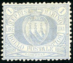 1894 - 1 lira oltremare Stemma (31), buona/ottima centratura, gomma originale, perfetto. A.Diena, cert. E.Diena e Ferrario (cat. Sassone € 2.200/7.000)