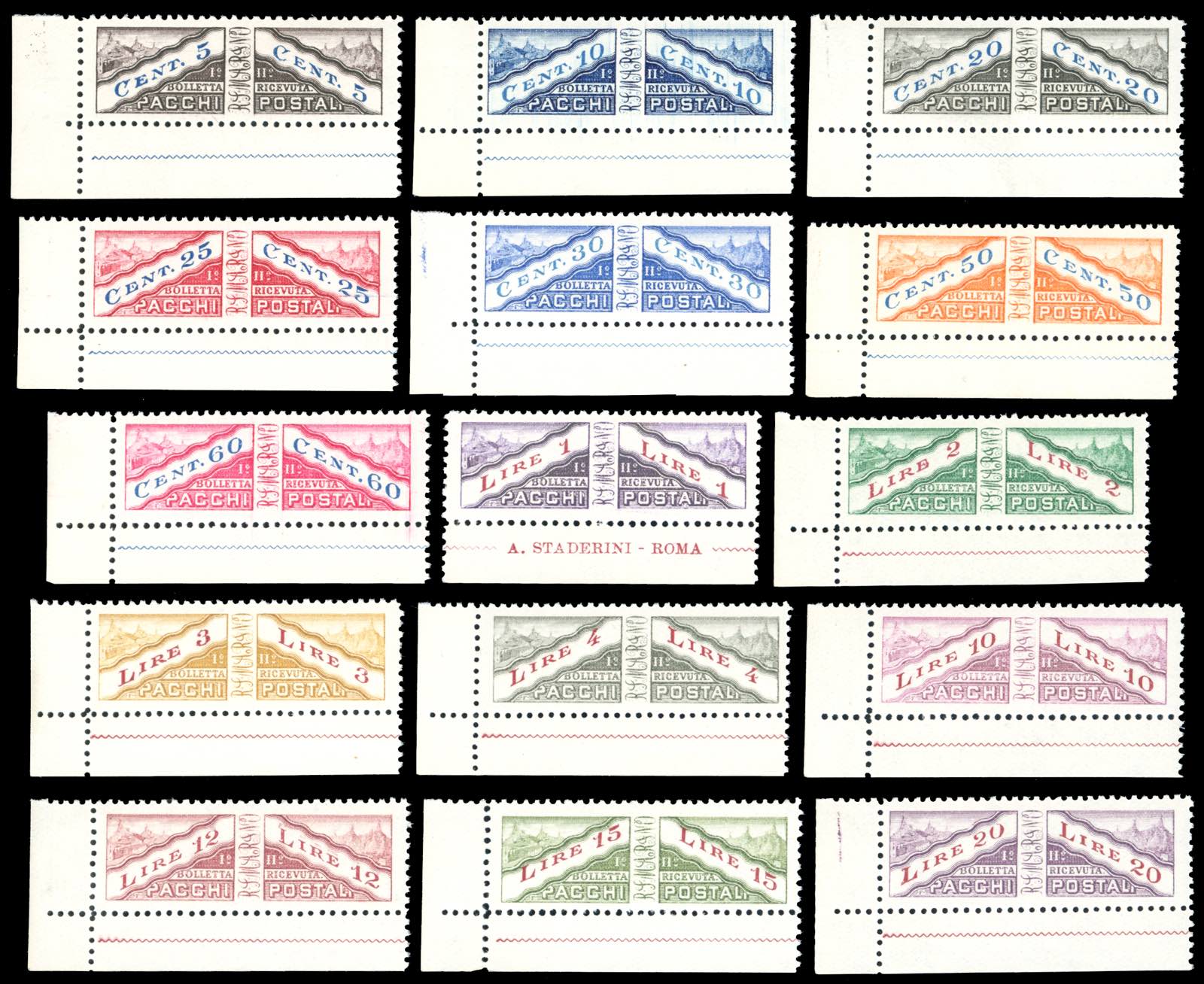 1928 - Non dentellati al centro, serie completa (1/15), tutti angolo di foglio ad eccezione del valore da 1 lira, gomma originale integra, ... Leggi tutto