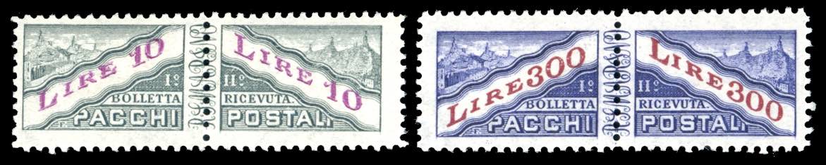 1953 - 10 e 300 lire, filigrana ruota (35/36), gomma originale integra, perfetti. Ferrario.