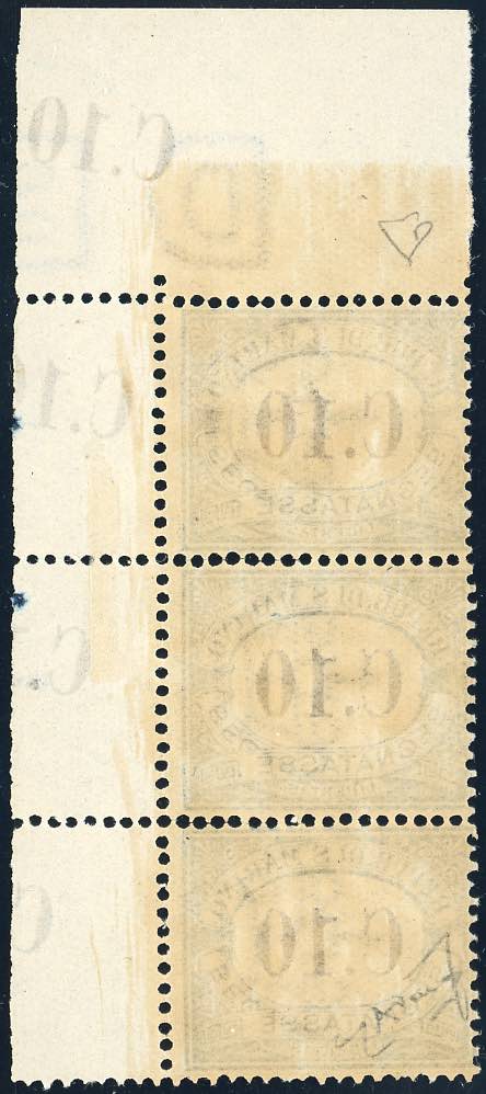 Lotto 2144 - 1925 - 10 cent., striscia verticale di tre, angolo di ...