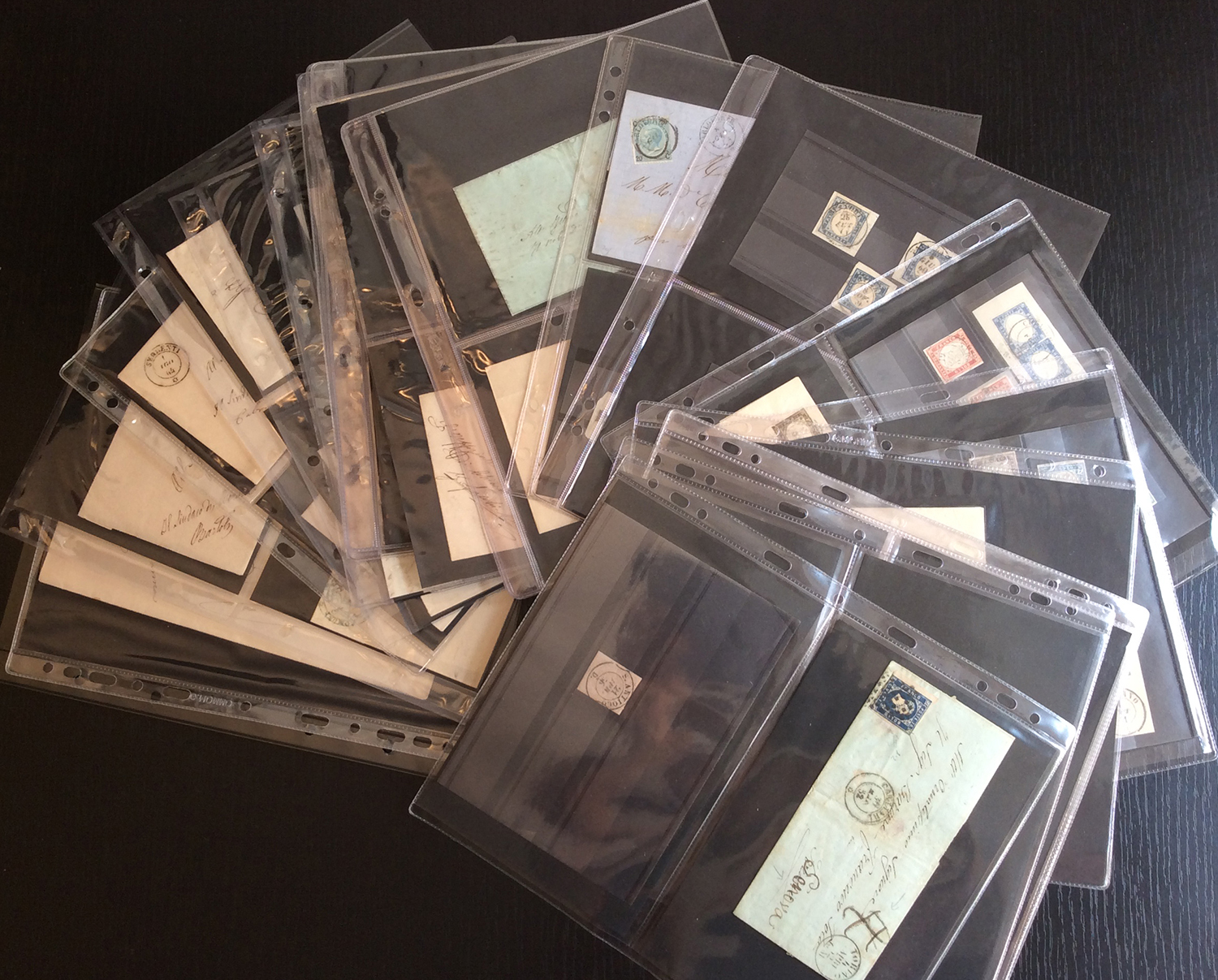 SARDEGNA ANNULLI ISOLA DI SARDEGNA 1852/1863 - Importante collezione del settore, composta da venticinque lettere affrancate, trentasette frammenti affrancati con le quattro emissioni nonché i primi numeri di Regno, con diverse rare presenze. Sono inoltre presenti oltre cinquanta lettere non affrancate/franchigie, tutte con annulli rari o rarissimi. Altissimo valore di catalogo, base d'asta simbolica.