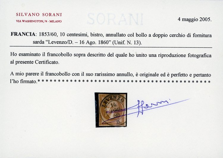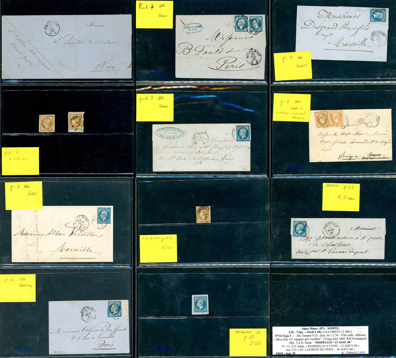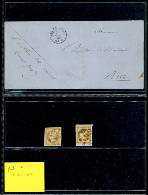 SARDEGNA CONTEA DI NIZZA 1860 - Interessante lotto composto da otto lettere (due non affrancate), due frammenti e due francobolli sciolti, incentrato sul primissimo periodo di amministrazione francese della Contea di Nizza. Notato qualche annullo raro e qualche data interessante. Un cert. Sorani.