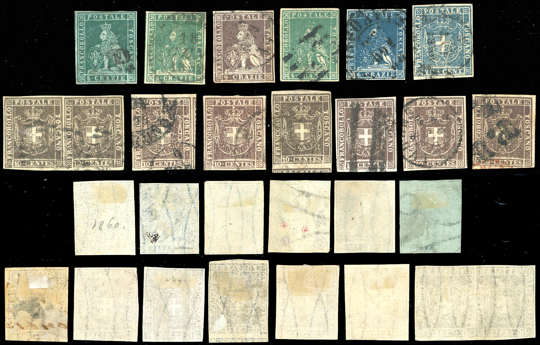 TOSCANA/GOVERNO PROVVISORIO 1851/1860 - Quattordici esemplari usati del periodo, tutti perfetti.