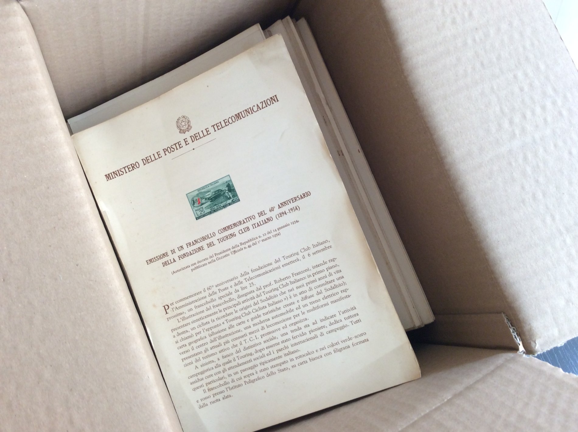 REPUBBLICA ITALIANA 1954/1963 - Accumulazione con diverse ripetizioni di bollettini illustrativi per le varie emissioni in una scatola.