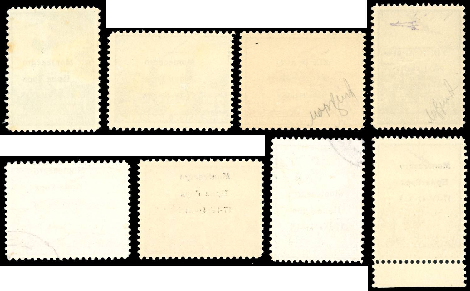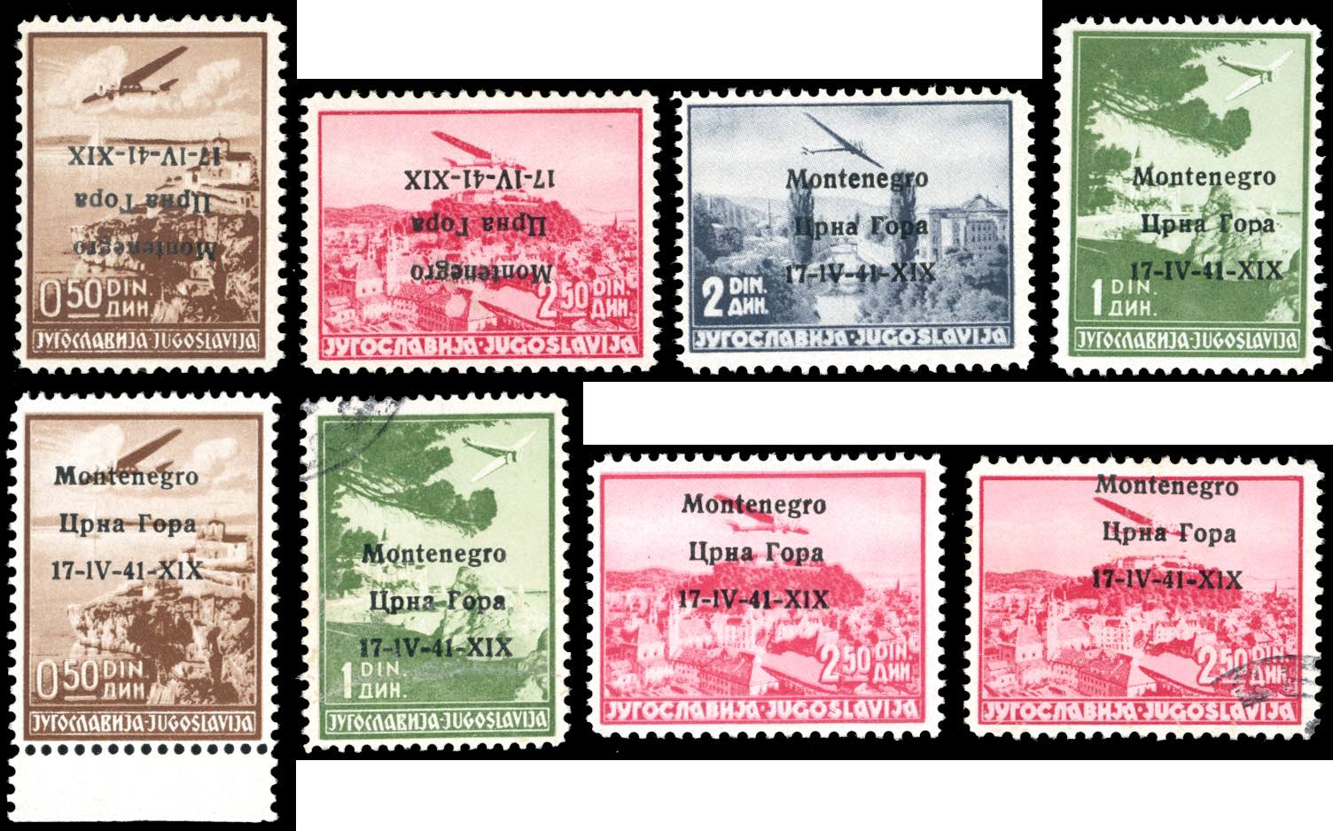 OCC.ITALIANA MONTENEGRO POSTA AEREA 1941 - Bell'insieme di otto esemplari del periodo, tutti con varietà di soprastampa, perfetti, ottima qualità.