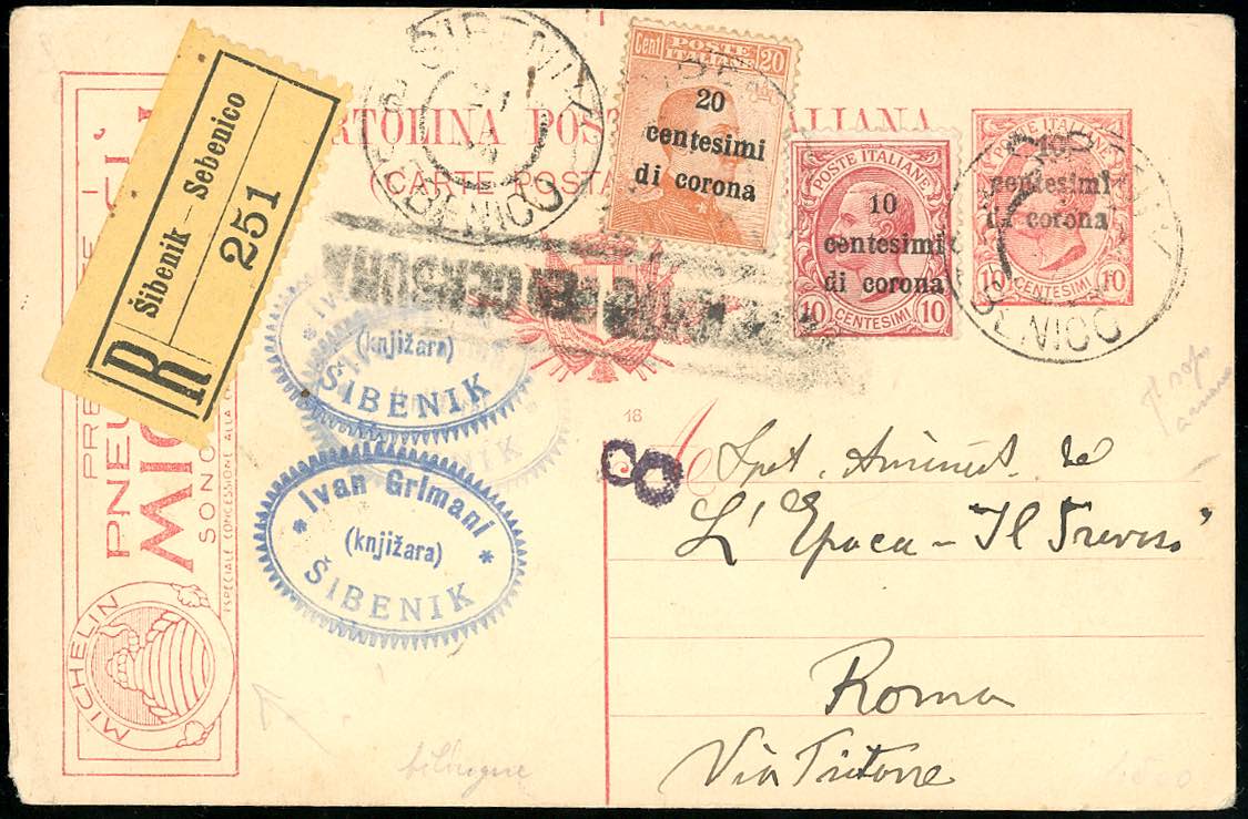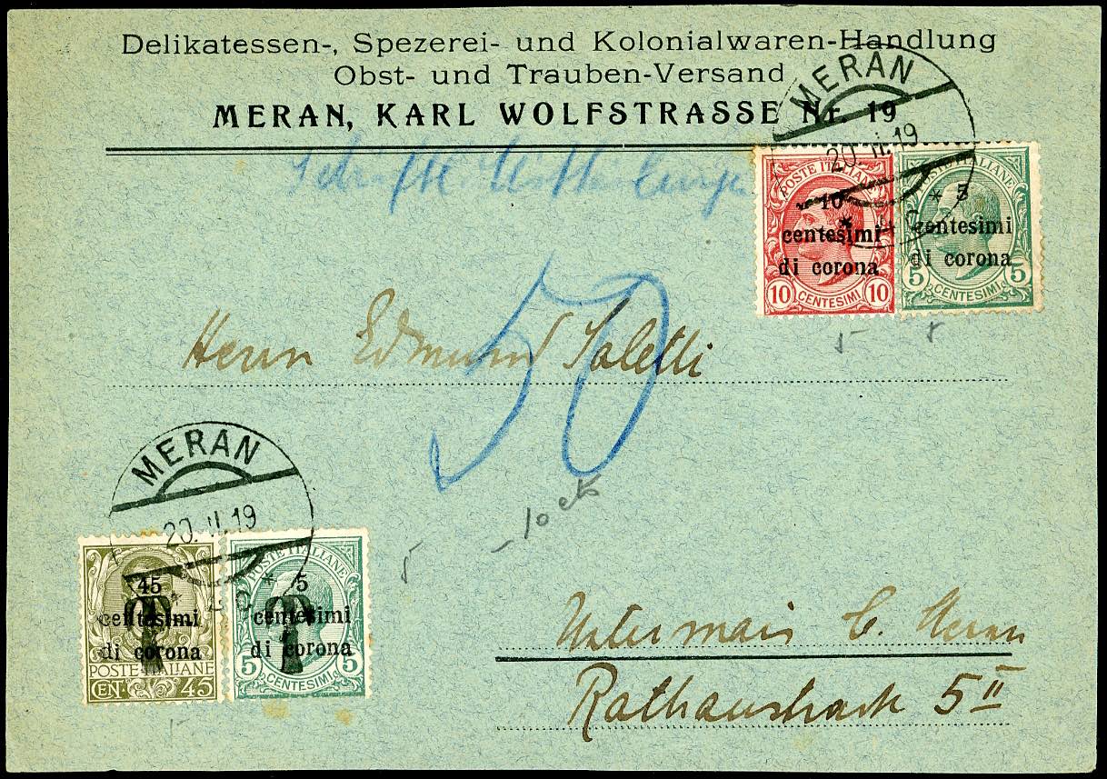 TERRE REDENTE 1918/20 - Due buste, un frontespizio e due cartoline con interessanti affrancature del periodo.