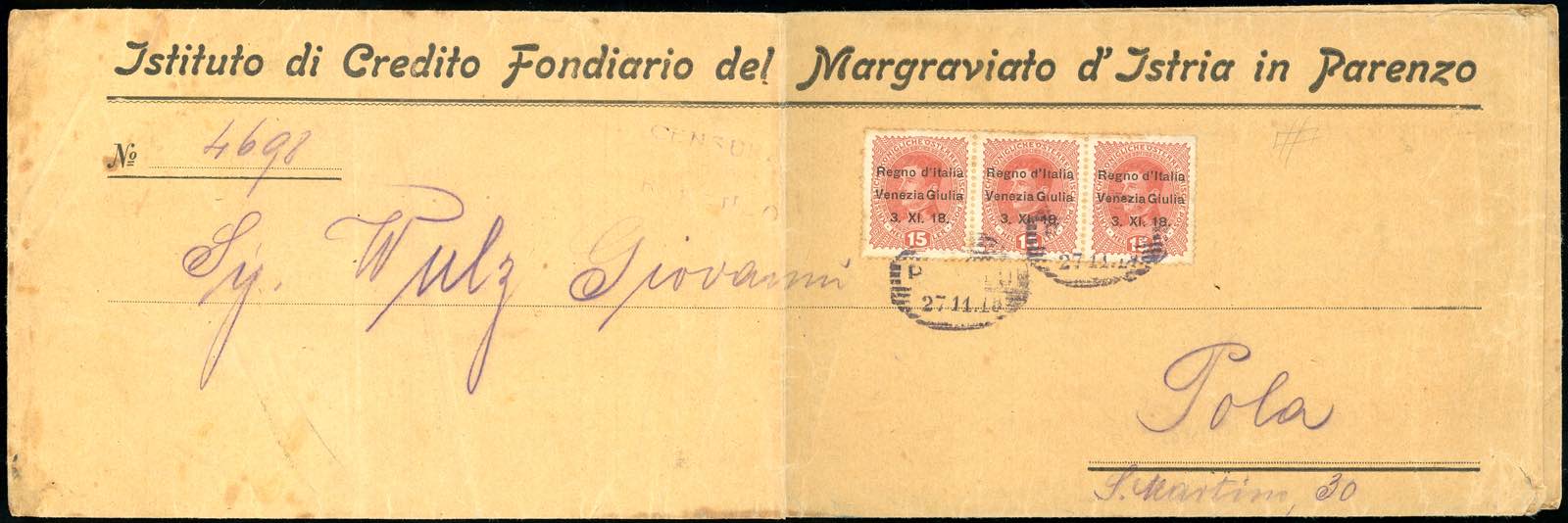 Lotto 2367 - TERRE REDENTE 1918/20 - Due buste, un frontespizio e due ...