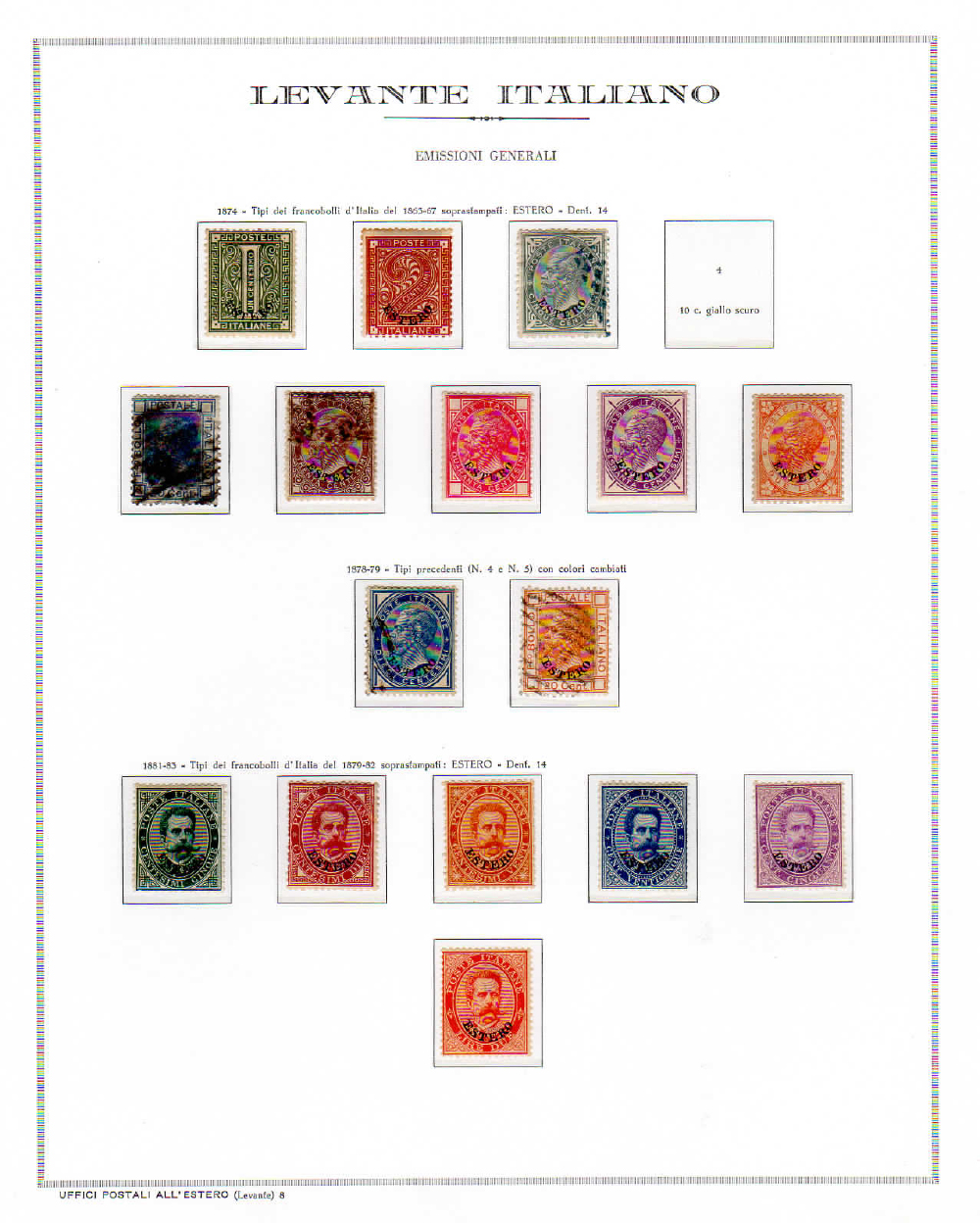 UFFICI POSTALI ITALIANI ALL'ESTERO 1874/1908 - Collezione di Emissioni Generali e Albania, montata su fogli d'aggiornamento Marini, con alcuni esemplari ripetuti o con varietà. Soprastampe originali e buon valore di catalogo.