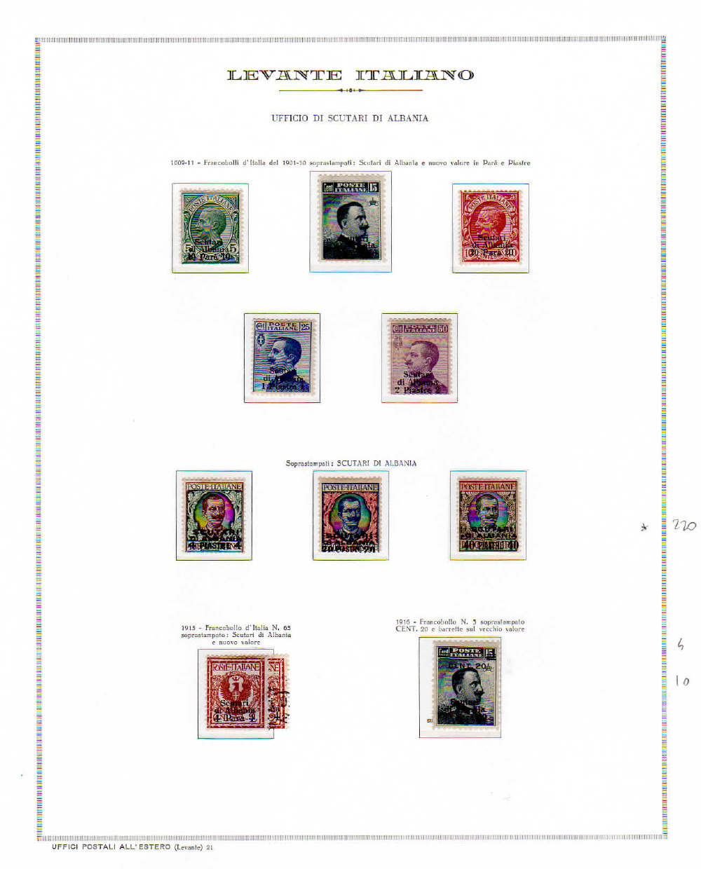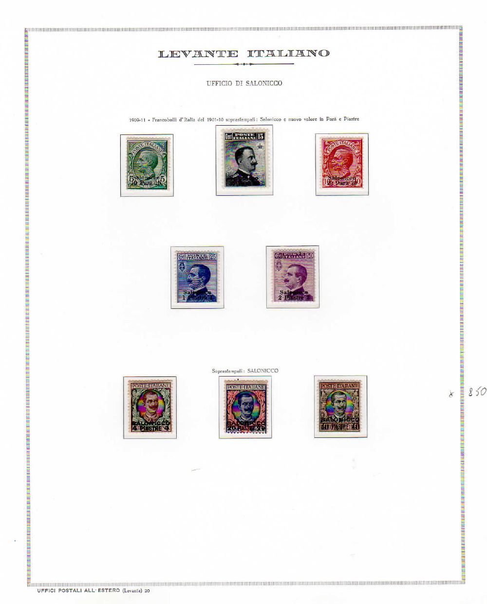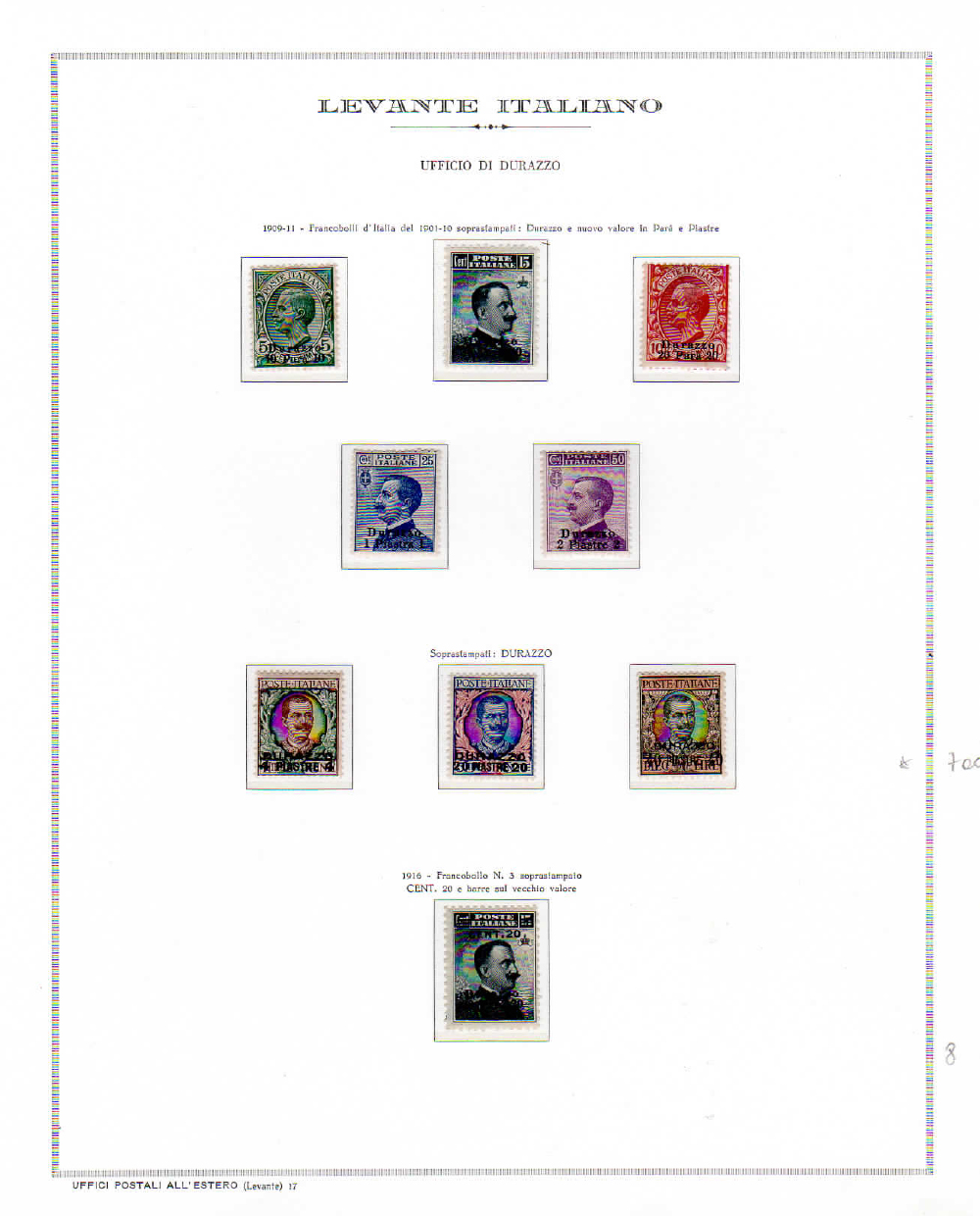 UFFICI POSTALI ITALIANI ALL'ESTERO 1901/1916 - Collezione delle emissioni di Durazzo, Gerusalemme, Janina, Salonicco, Scutari, Smirne, Valona, Bengasi e Tripoli di Barberia, in fogli d'album Marini. Ottima qualità generale.
