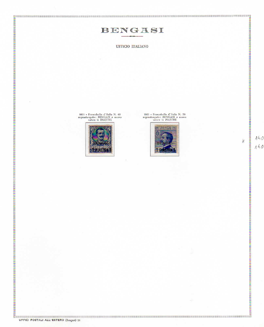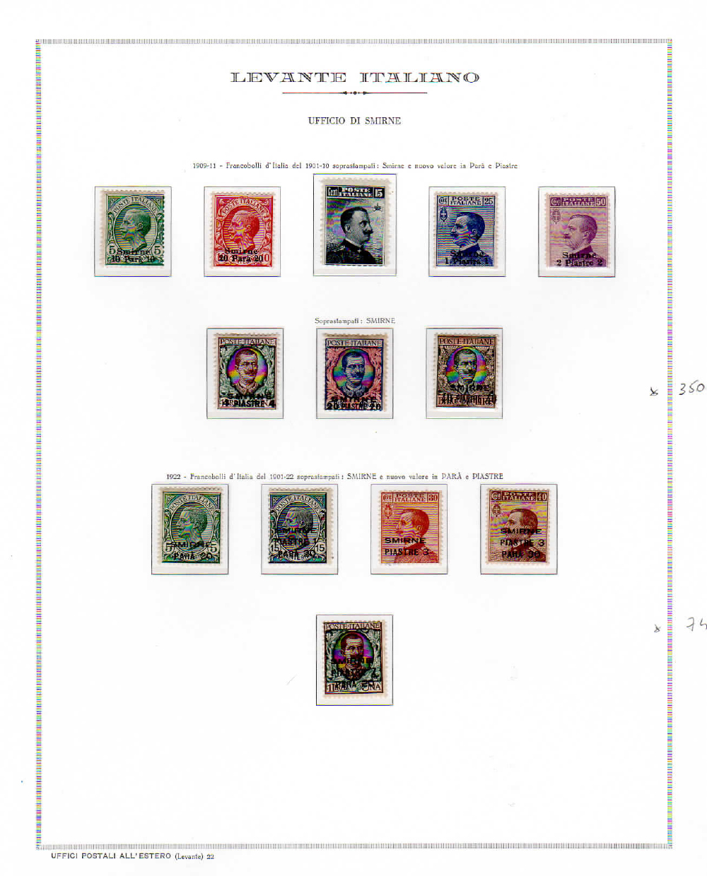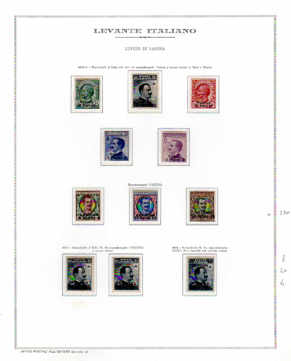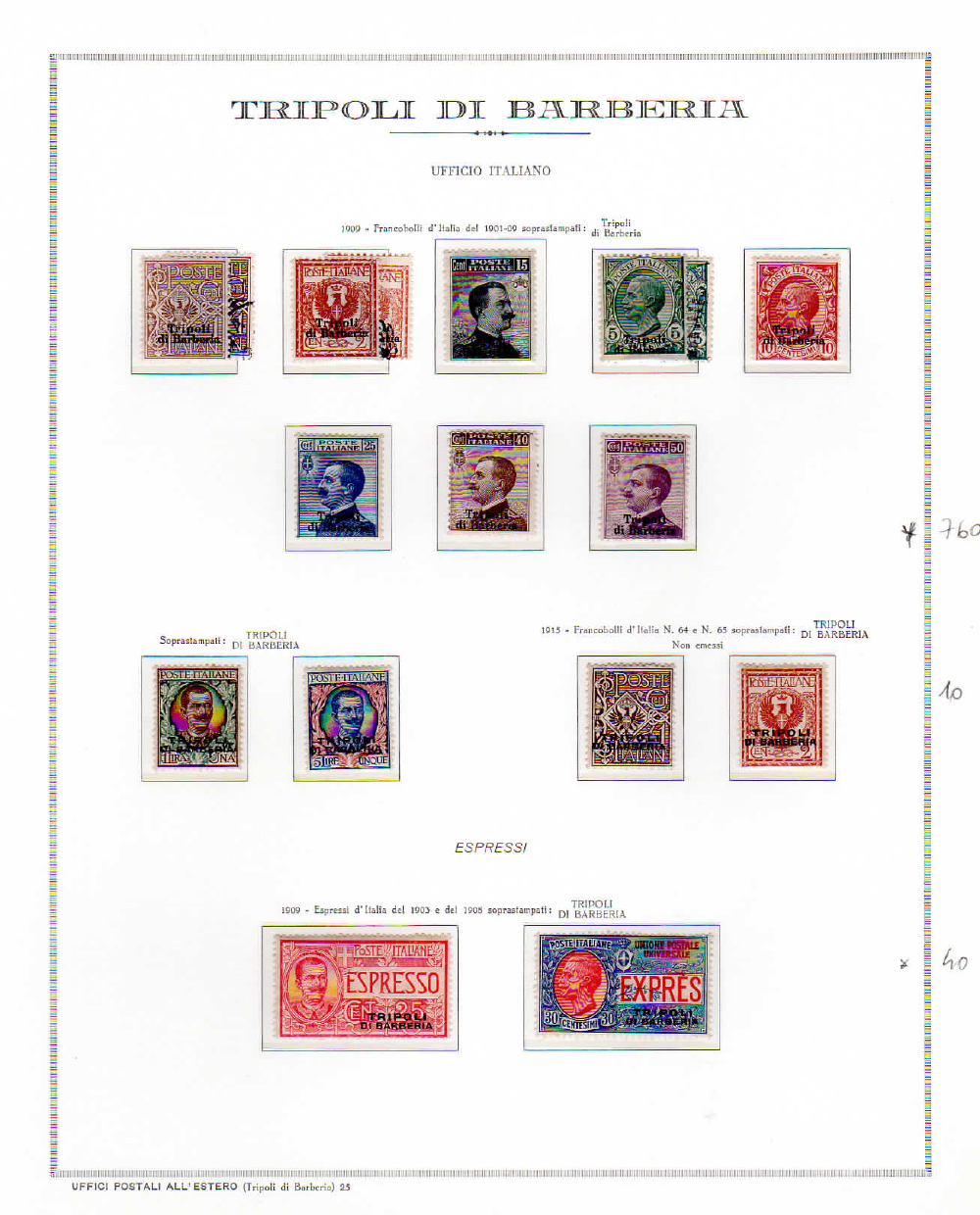 UFFICI POSTALI ITALIANI ALL'ESTERO 1901/1916 - Collezione delle emissioni di Durazzo, Gerusalemme, Janina, Salonicco, Scutari, Smirne, Valona, Bengasi e Tripoli di Barberia, in fogli d'album Marini. Ottima qualità generale.