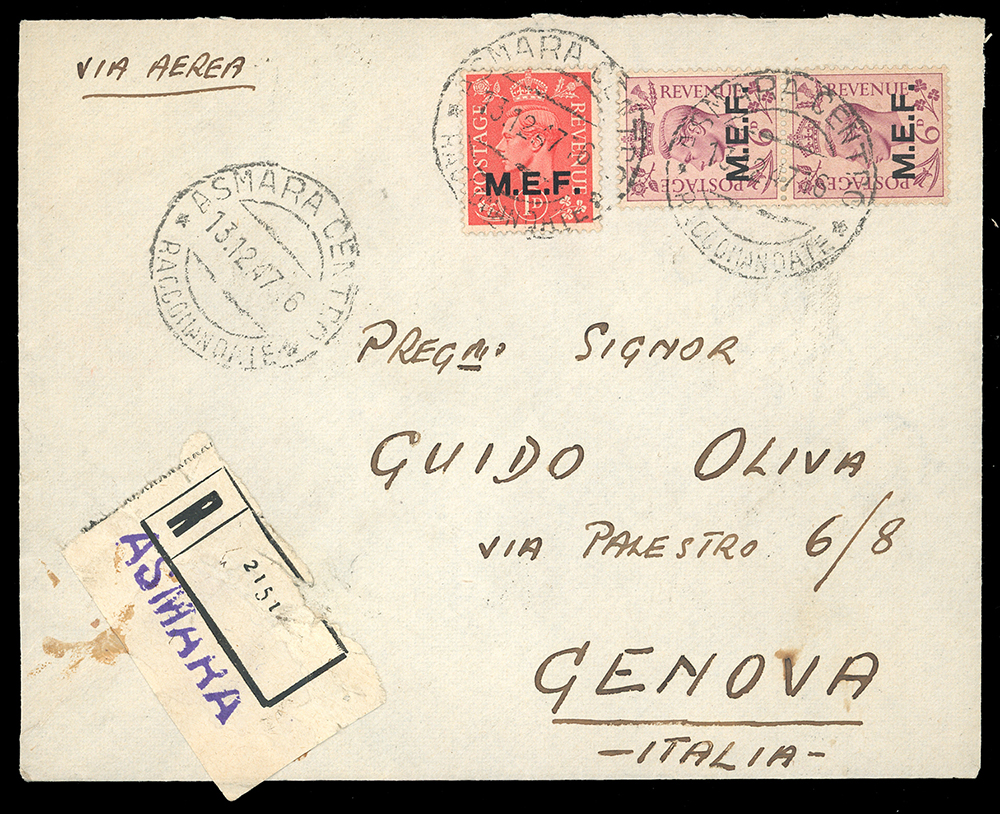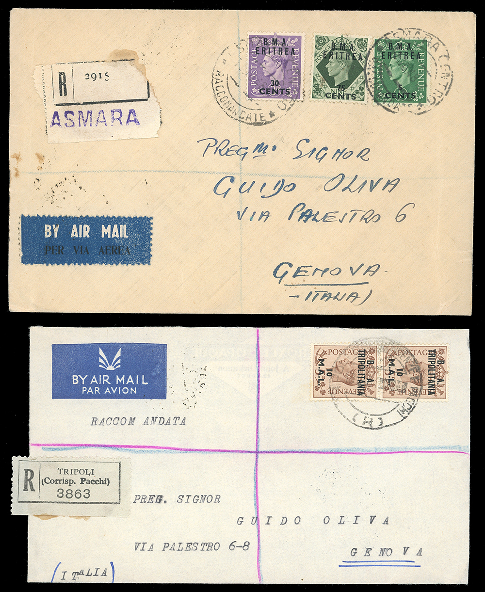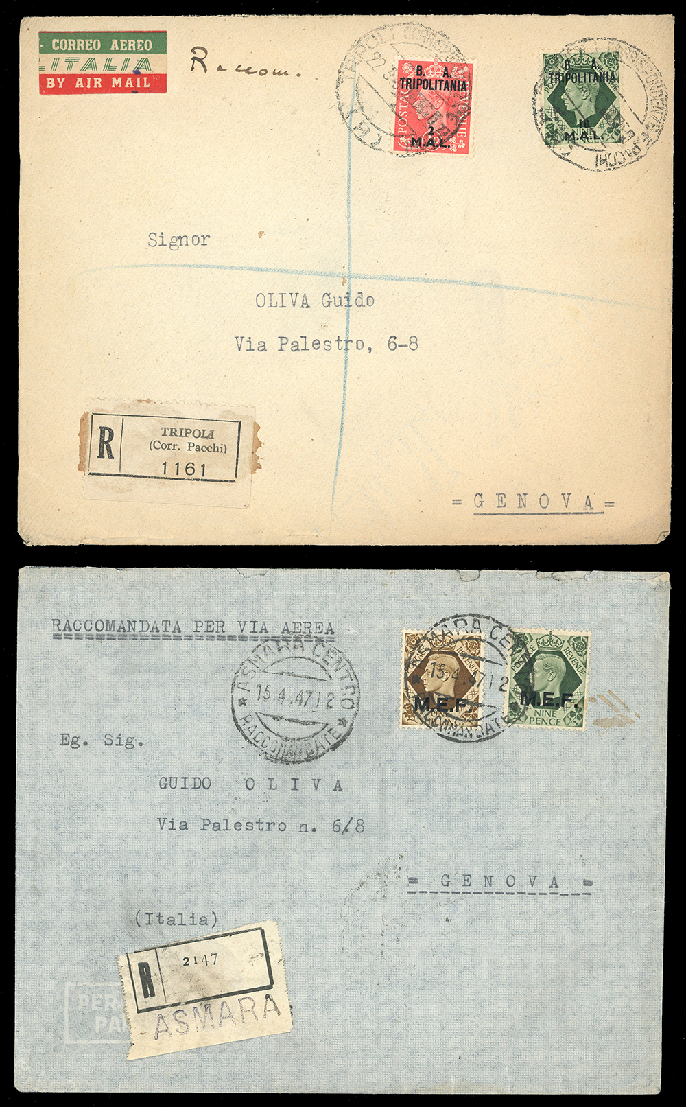 OCCUPAZIONE BRITANNICA COLONIE 1947/1951 - Bell'insieme di undici buste, tutte affrancate con soprastampati MEF, BMA, BM delle diverse colonie. Ottima qualità.