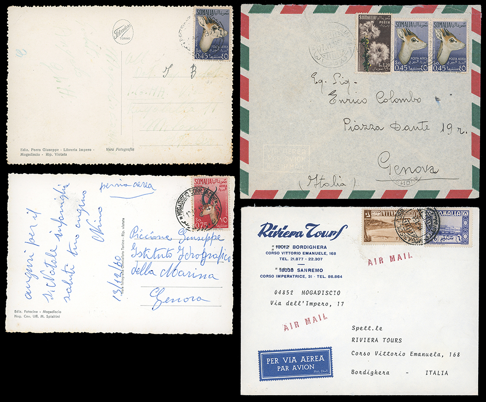 SOMALIA AFIS 1950/1960 - Bell'insieme di nove lettere/cartoline variamente affrancate con le emissioni del periodo e di due cartoline postali nuove.