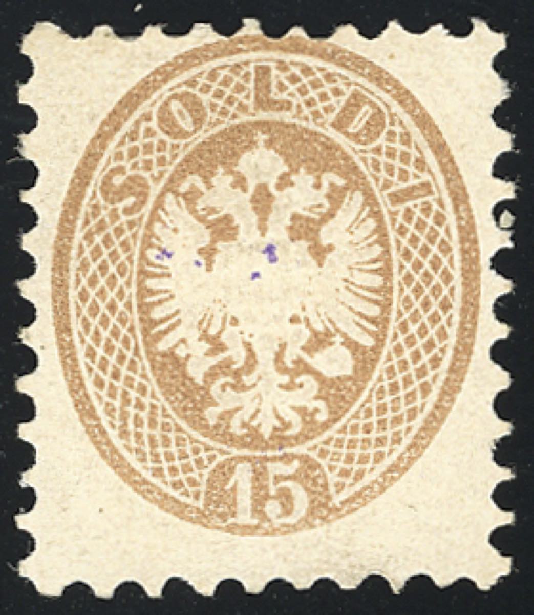 Lotto 53 - 1864 - 15 soldi bruno, dent. 9 1/2 (45), nuovo, gomma ...
