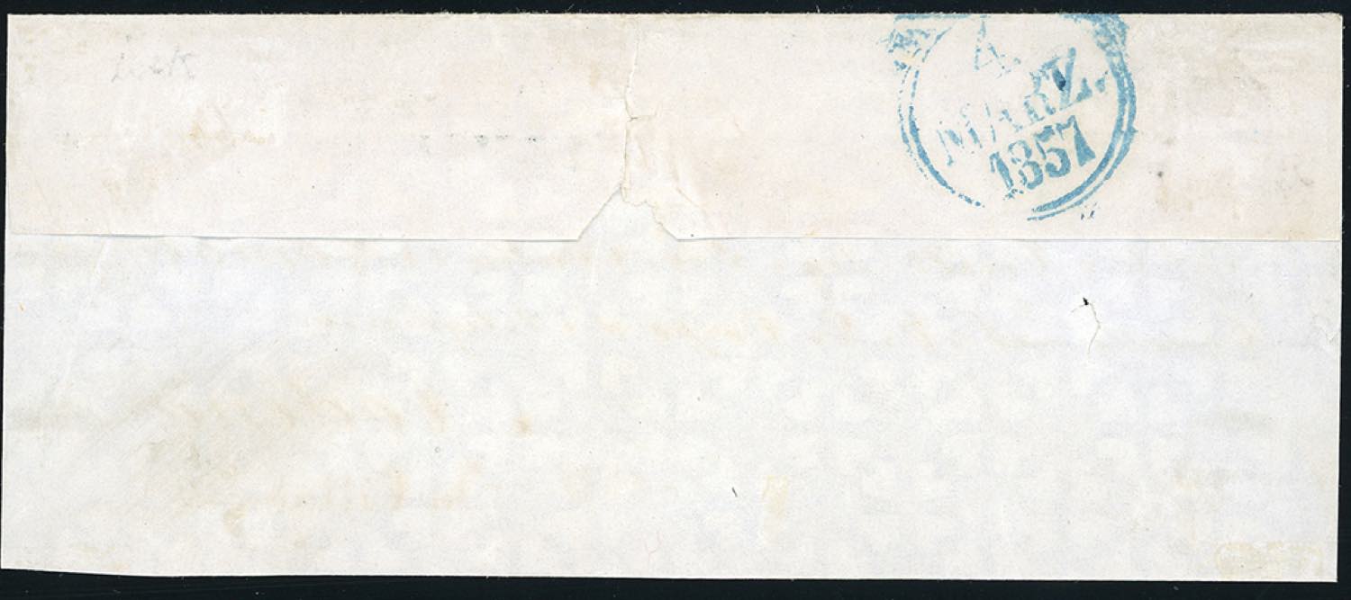 FOSDINOVO, 6 sbarre + lineare azzurri punti R1 - 10 cent. (2), giusto a sinistra, su frontespizio completo di lettera con parte del verso, ... Leggi tutto