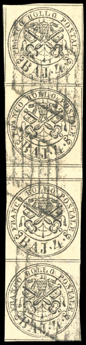 Lotto 368 - 1852 - 4 baj bruno grigio chiaro (5), striscia verticale di ...