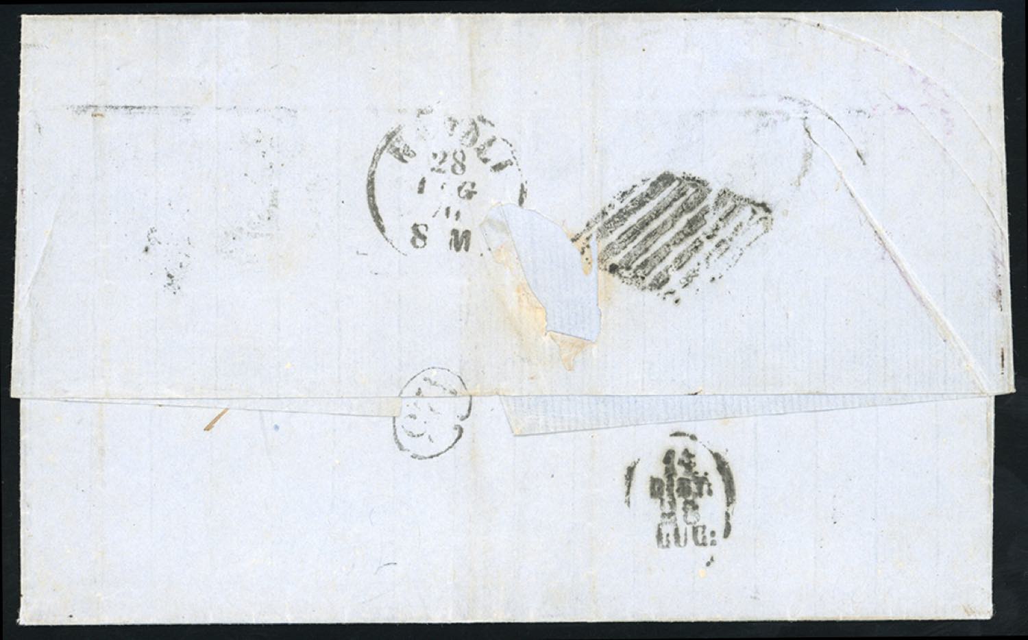 1870 - 40 cent. giallo limone (29), coppia con dentellatura verticale fortemente spostata a destra, su lettera scritta a Marsiglia ed ... Leggi tutto