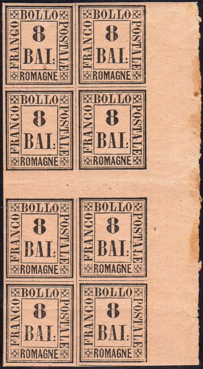 1859 - 8 baj rosa (8), blocco di otto con interspazio al centro, bordo di foglio, gomma originale, integra per gli esemplari con ... Leggi tutto