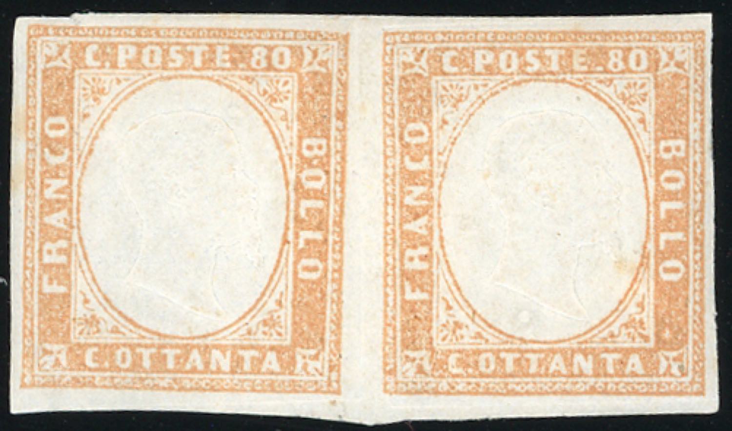 Lotto 619 - 1858 - 80 cent. bistro arancio (17), coppia orizzontale, ...