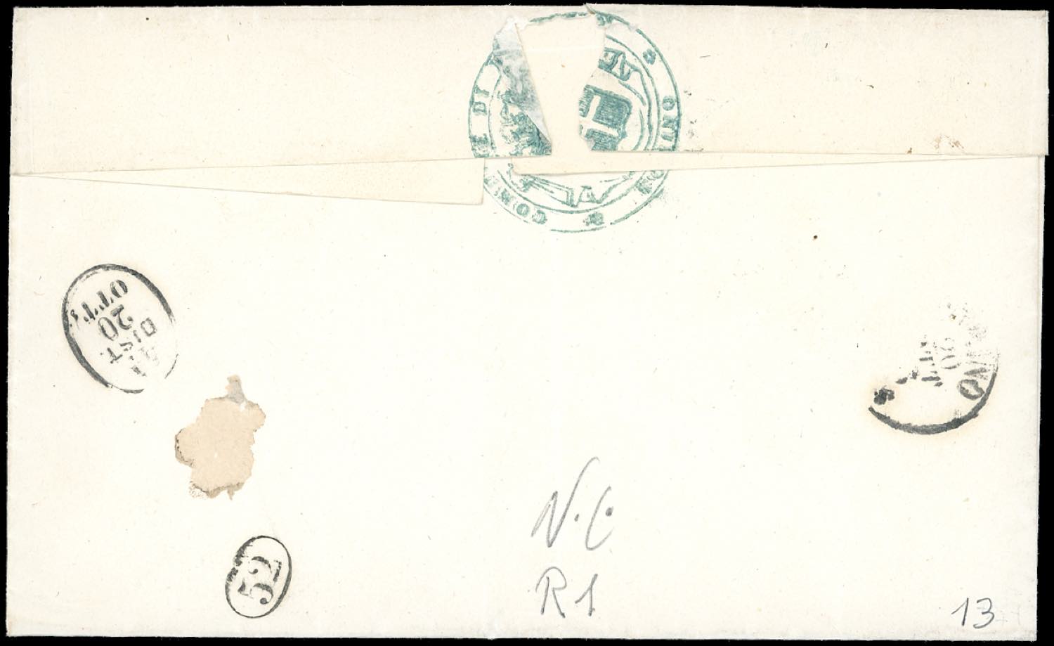 PIEMONTE-BORGARO, punti R1 - 15 cent. (13), perfetto, su sovracoperta di lettera del 20/10/1863 per Torino. UNICO CASO NOTO di questo raro ... Leggi tutto
