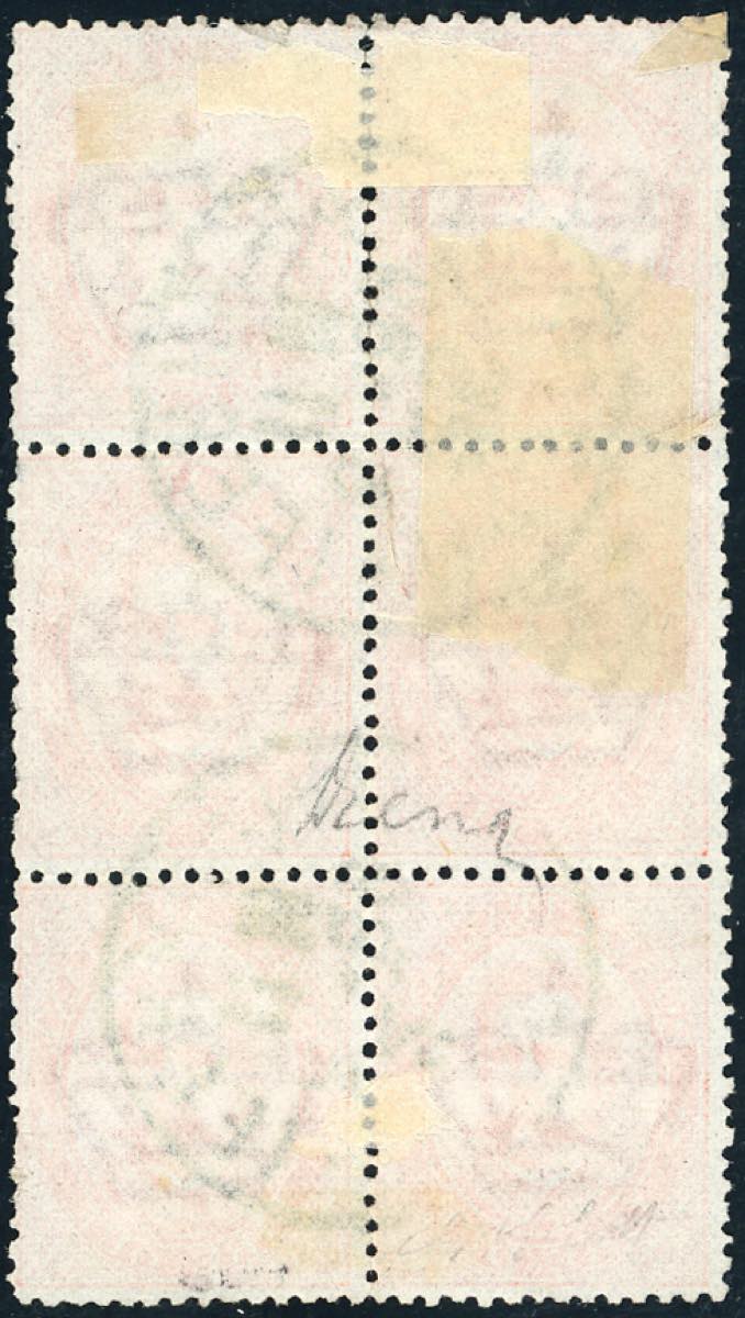 1879 - 2 lire Umberto I (43), blocco di sei esemplari usati, alcuni difetti e una piccola riparazione all'angolo superiore sinistro. GRANDE ... Leggi tutto
