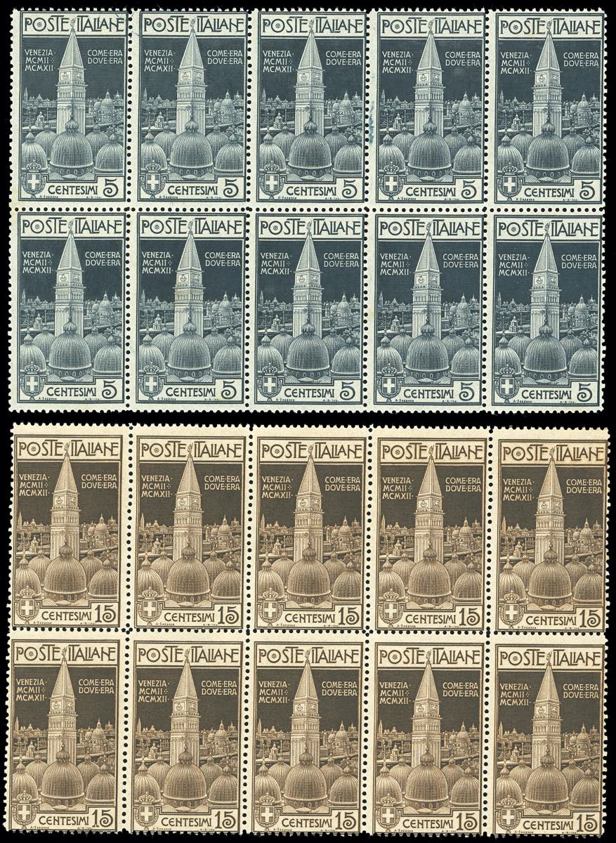 1912 - Campanile di Venezia, serie completa (97/98), blocchi di 10 esemplari, gomma originale integra, perfetti, molto freschi. Ferrario.