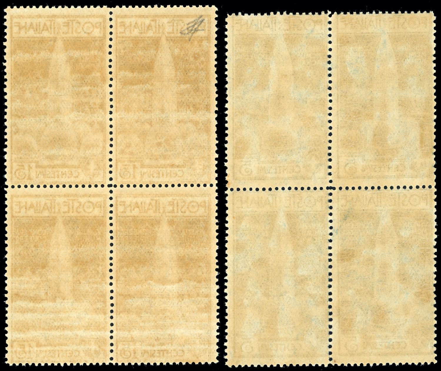 1912 - Campanile di Venezia, serie completa (97/98), blocchi di quattro esemplari, gomma originale integra, perfetti. Molto freschi. Ferrario.